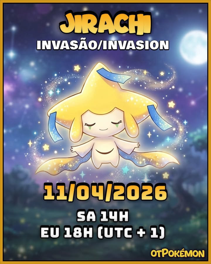 Jirachi, conhecido por realizar desejos, surgirá para simbolizar a realização de um grande sonho: o lançamento do nosso servidor internacional.